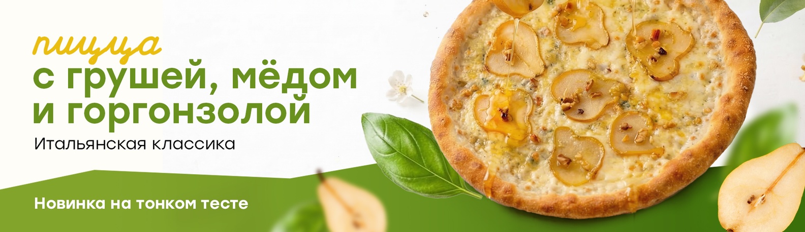 Пицца с грушей, мёдом и горгонзолой — пицца на тонком тесте